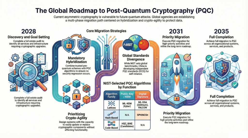 - Migrating High-Priority Systems (2028–2030): Enforcing a “no new classical-only” policy and upgrading Public Key Infrastructure (PKI).